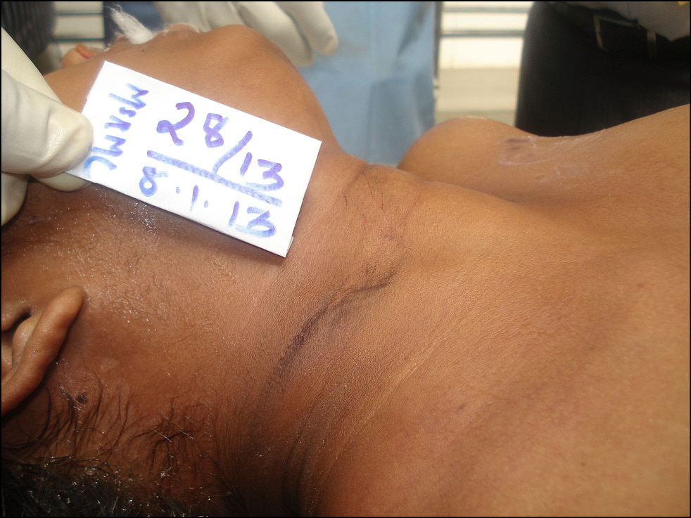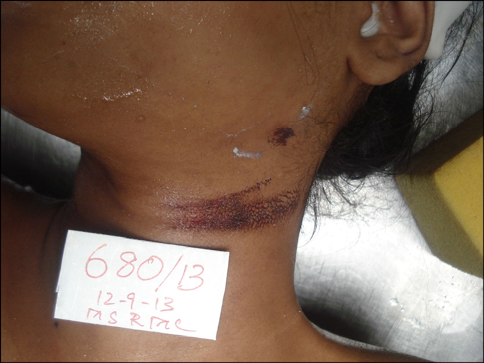 Fig. 1. Interrupted ligature mark on a victim who survived for 3 days.