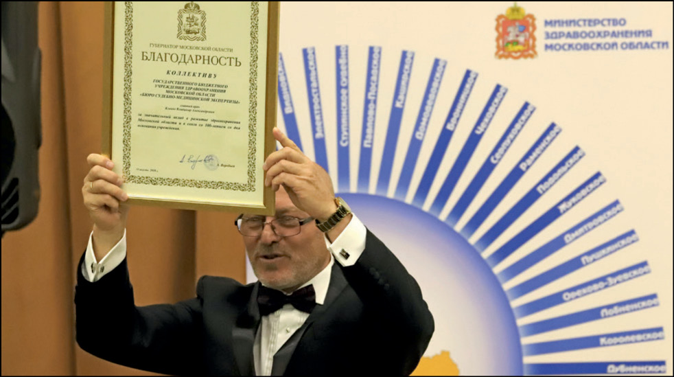 Благодарность коллективу ГБУЗ МО «Бюро СМЭ» от губернатора Московской области Андрея Воробьева за значительный вклад в развитие здравоохранения Московской области и в связи со 100-летием. 2018 г.