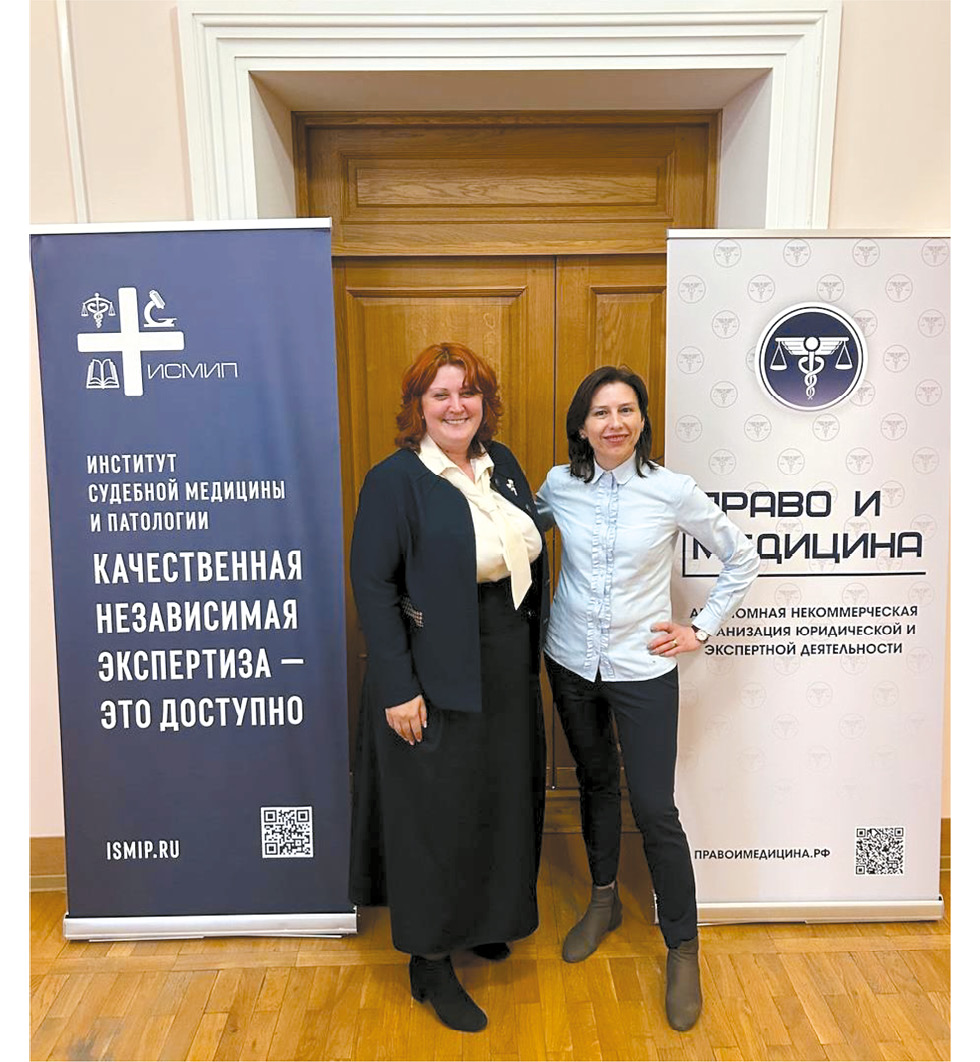 Рис. 6. Слева направо: Олеся Валерьевна Весёлкина, директор Института судебной медицины и патологии; Юлия Викторовна Кеменева, судебно-медицинский специалист Региональной делегации Международного Комитета Красного Креста в Российской Федерации и Республике Беларусь, основатель АНО «Право и медицина».