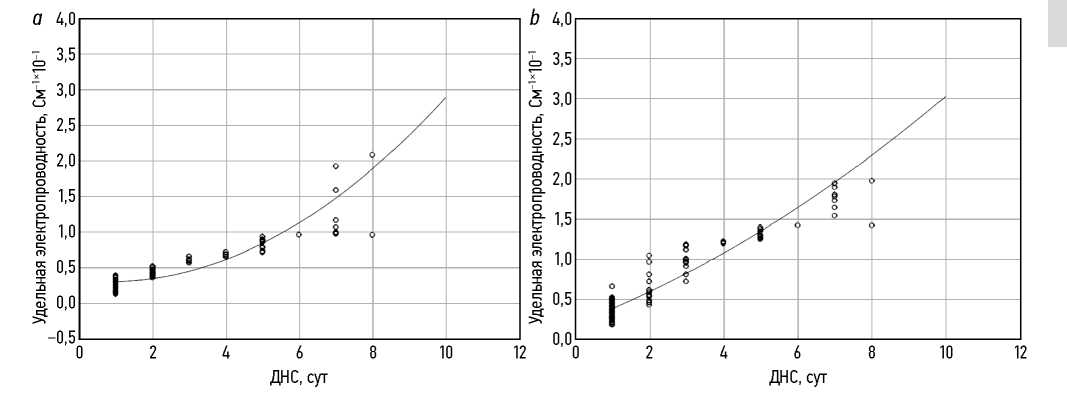 The primary method for recording outcomes was logging the specific electrical conductivity values into a Microsoft Excel® database (Microsoft Office®, Microsoft Corp., USA). We also performed initial data processing as per standard statistical protocols recommended for biological and medical research [10]. Mathematical modeling was conducted using Statistica 10.0® software (Statsoft, Dell Inc., USA).