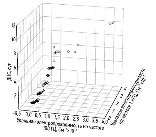 MATERIALS AND METHODS: Conductometric properties of synovial fluid of knee joints of 103 cadavers who died of various causes at the age of 20–87 years were studied. The study was performed in the late postmortem period (up to 10 days). The time since death was established comprehensively considering medical, forensic and investigative data. The electrical conductivity was measured using AKIP RLC 6109 measuring system, with an error of 0.1%, at frequencies of 0.1 kHz, 1 kHz, and 10 kHz.