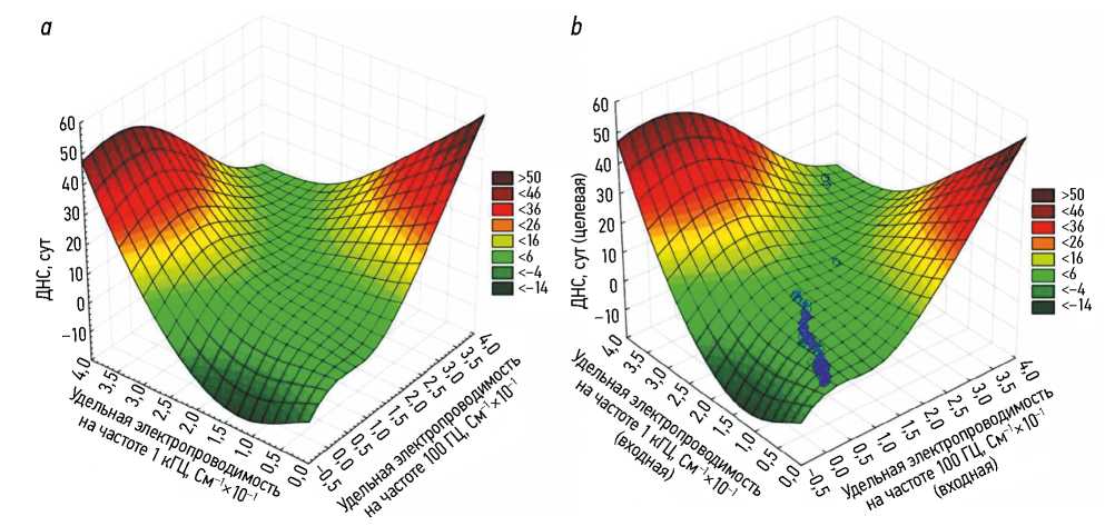 AIM: To assess changes in electrical conductivity of synovial fluid of knee joints at the stage putrefaction with mathematical description of the revealed changes on the basis of a multilayer perceptron to substantiate the prospects of determining the time since death by conductometric method.