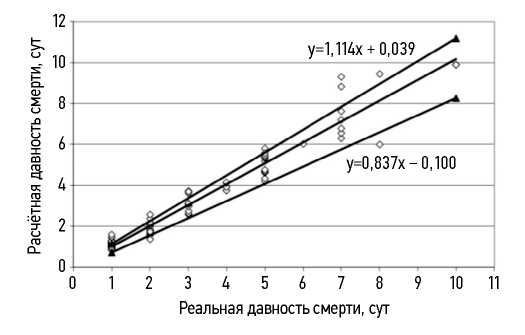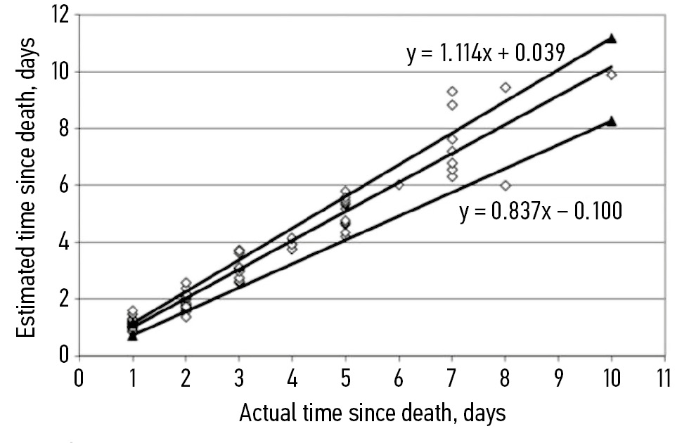 Inclusion criteria: forensic medical examinations of cadavers in the late postmortem period (up to 10 days), where the time since death was morphologically verified through analysis of the extent of postmortem changes, supplemented by additional case information.
