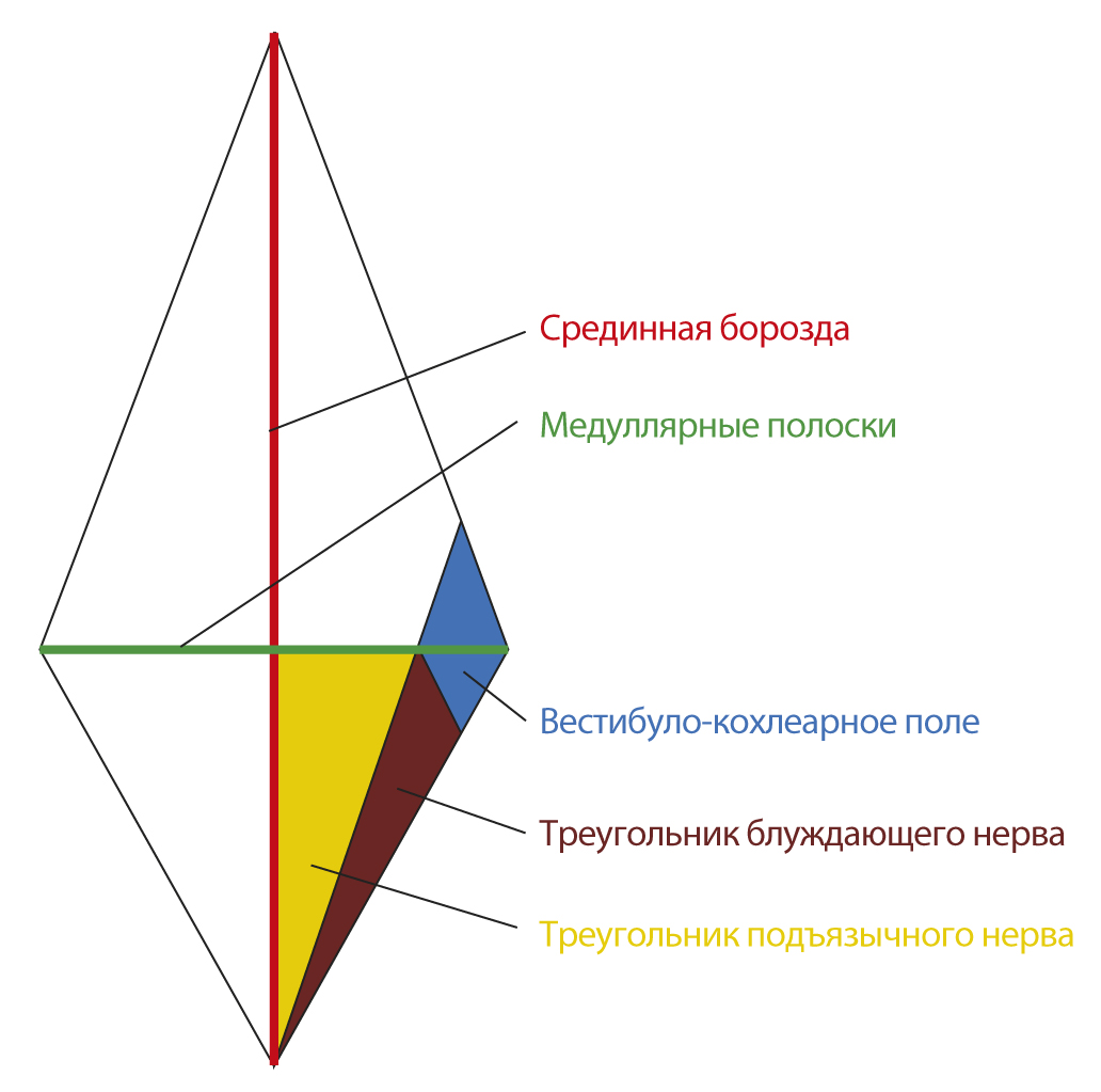 Рис. 1. Схема проекции ядер черепно-мозговых нервов в дне ромбовидной ямки