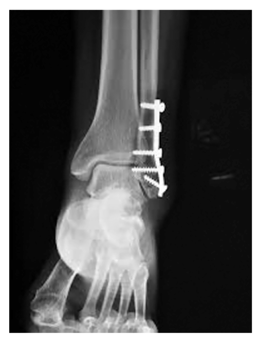 При проведении медицинских судебных экспертиз правильности оказания хирургической медицинской помощи отмечены случаи, требующие оценки возникновения очага остеопороза в области перелома после проведения операции остеосинтеза при переломе нижней трети диафиза малоберцовой кости, чаще при переломе Дюпюитрена (рис. 1).