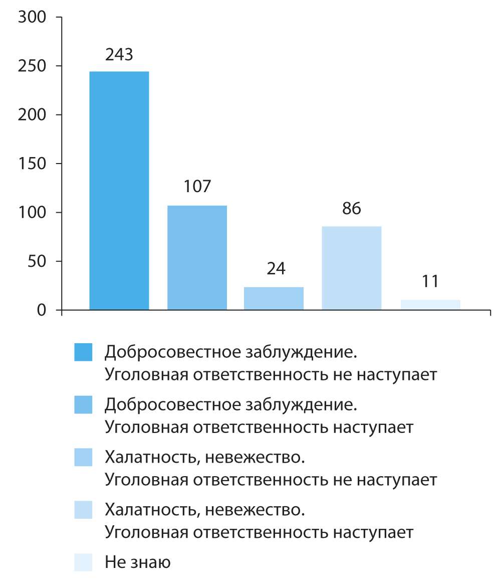 При анализе результатов стало понятно, что термин «врачебная ошибка» — внеправовое понятие, поэтому не может повлечь правовых санкций (рис. 1).