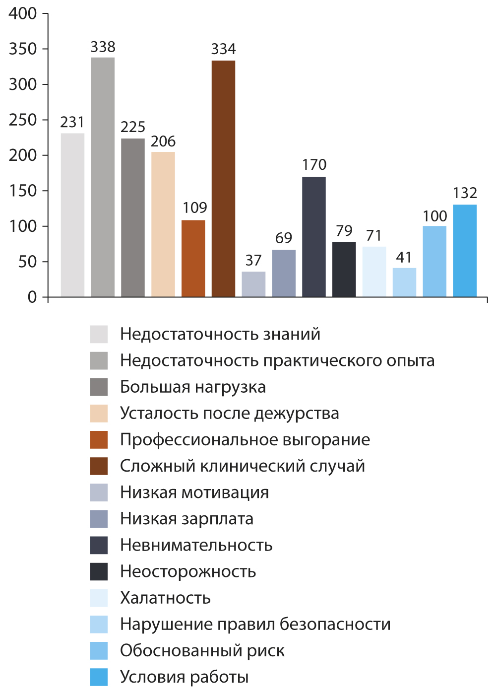 Интересен взгляд респондентов на вероятные причины совершения «врачебных ошибок» медицинскими работниками. Структура их ответов представлена на рис. 2.