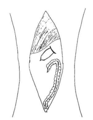 Рис. 3. Схематическое изображение врождённого порока развития кишечника, выявленного интраоперационно