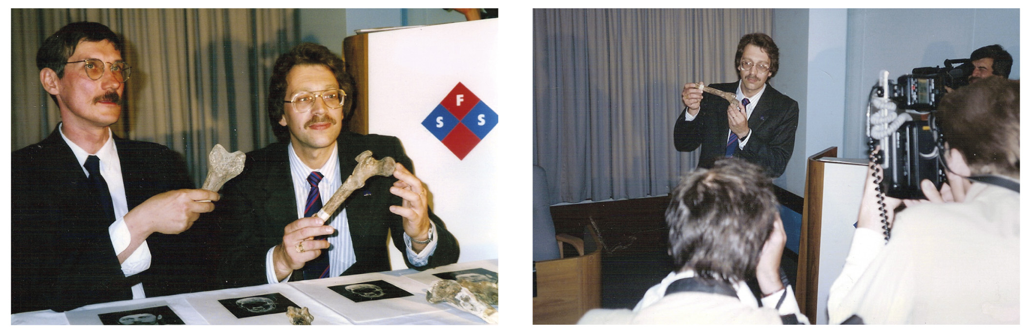 П.Л. Иванов и заведующий отделом МВД Великобритании П. Гилл на пресс-конференции, посвящённой экспертизе останков Николая II (Лондон, Великобритания, апрель 1993 г.)