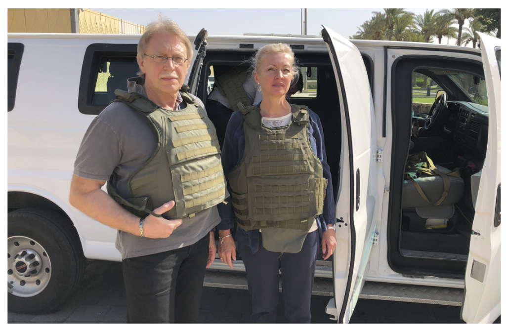П.Л. Иванов и заведующий отделом молекулярно-генетических экспертиз РЦСМЭ Е.Ю. Земскова готовятся к поездке в Центральную женскую тюрьму «Рассафа» для взятия образцов крови заключённых (Багдад, Ирак, август 2018 г.)