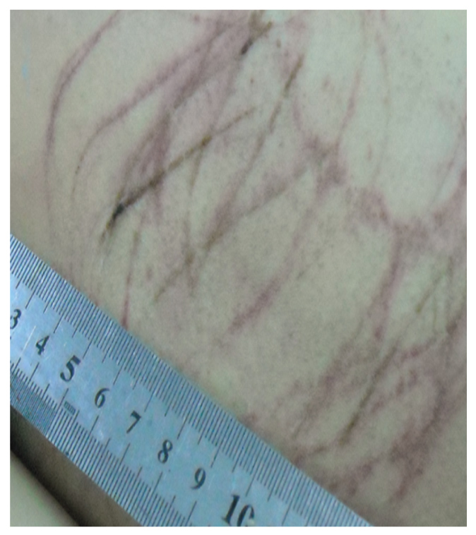 Рис. 2. Наркотик «дизайнерской группы» — мефедрон: следы расчёсывания тела.