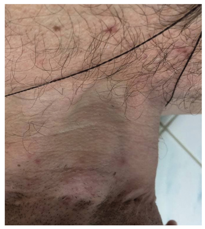 Fig. 3. Taking amphetamine: an allergic reaction in the form of a polymorphic rash and signs of inflammation.