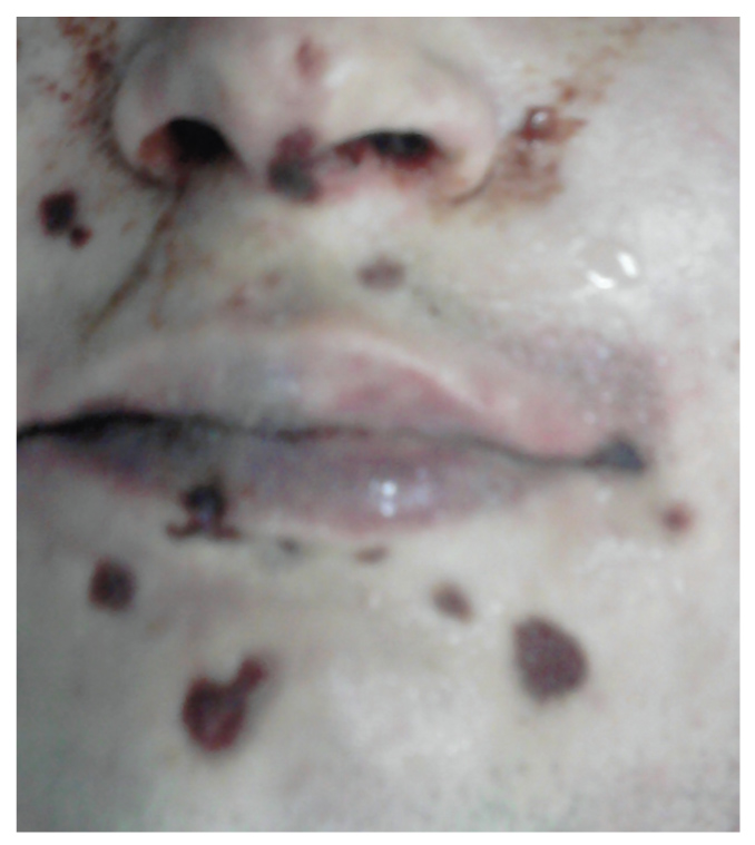 Рис. 9. Потребление метафетамина: высыпания в области носа, щёк, подбородка.