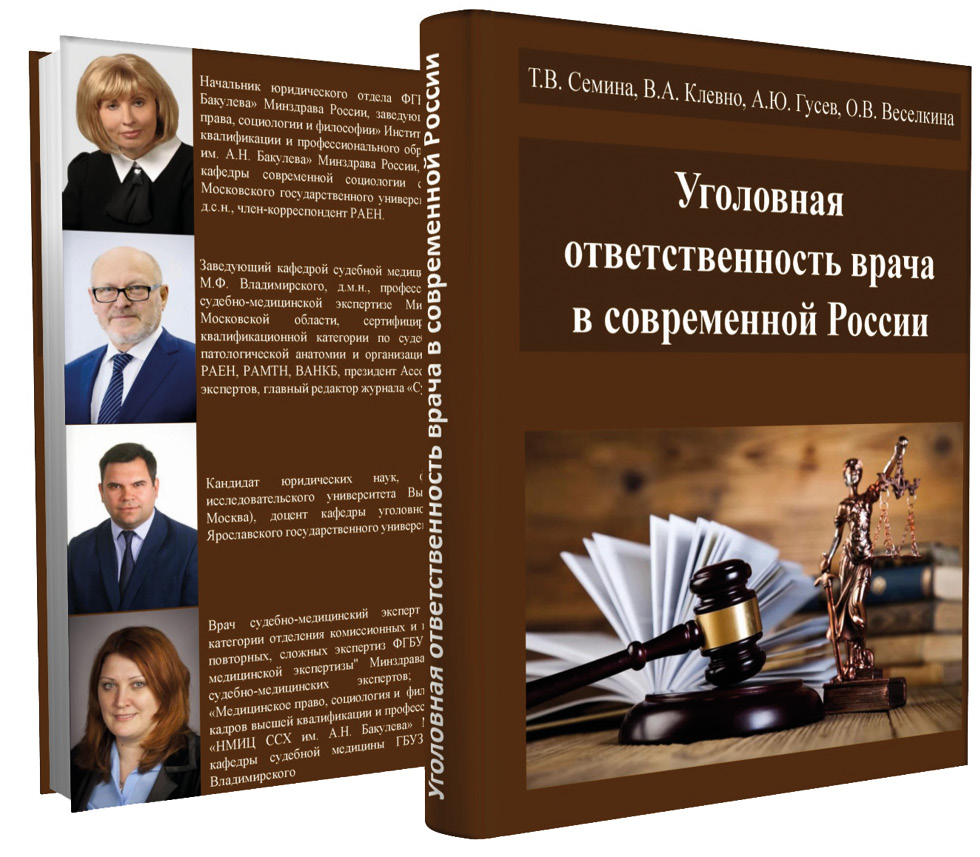 - Semina TV, Klevno VA, Gusev AYu, Veselkina OV. Criminal liability of a doctor in modern Russia. Ed. by T.V. Semina. Moscow: Prospect; 2021. 352 p. (In Russ).